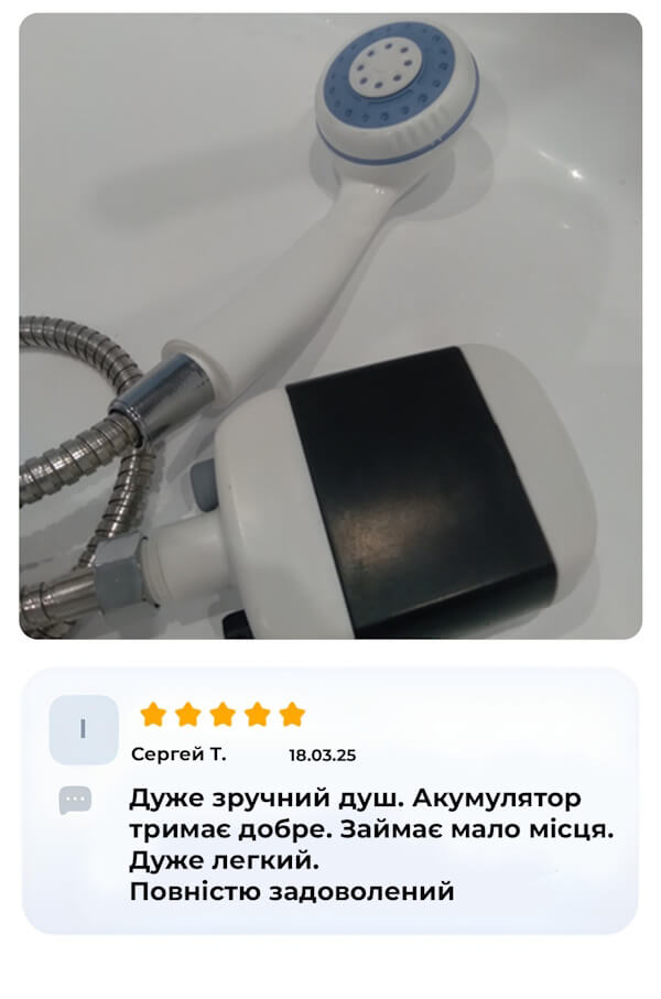 Літієвий акумулятор дозволяє користуватися душем без електромережі.